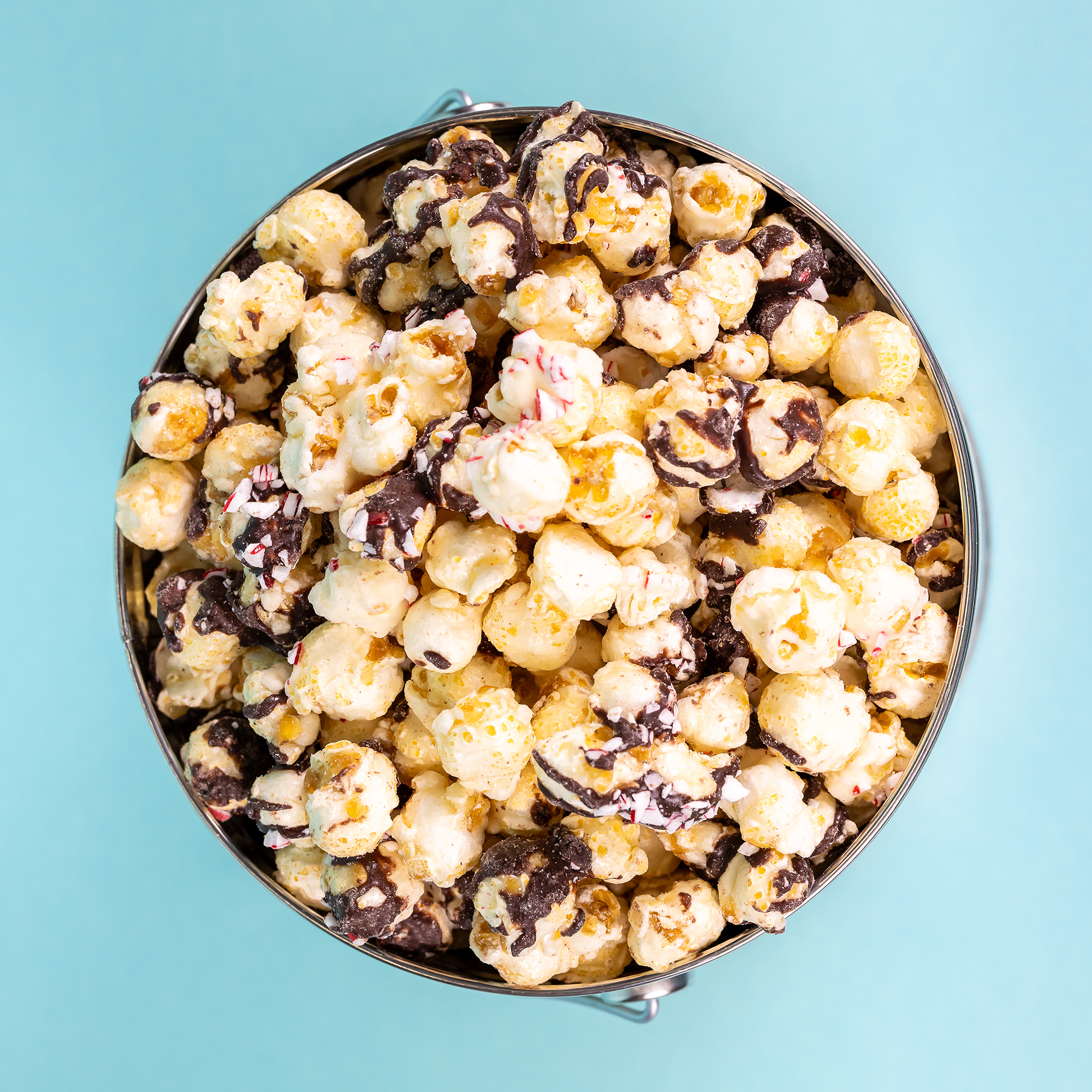 Your choice of holiday popcorn in a small tin, perfect for sharing or gifting.