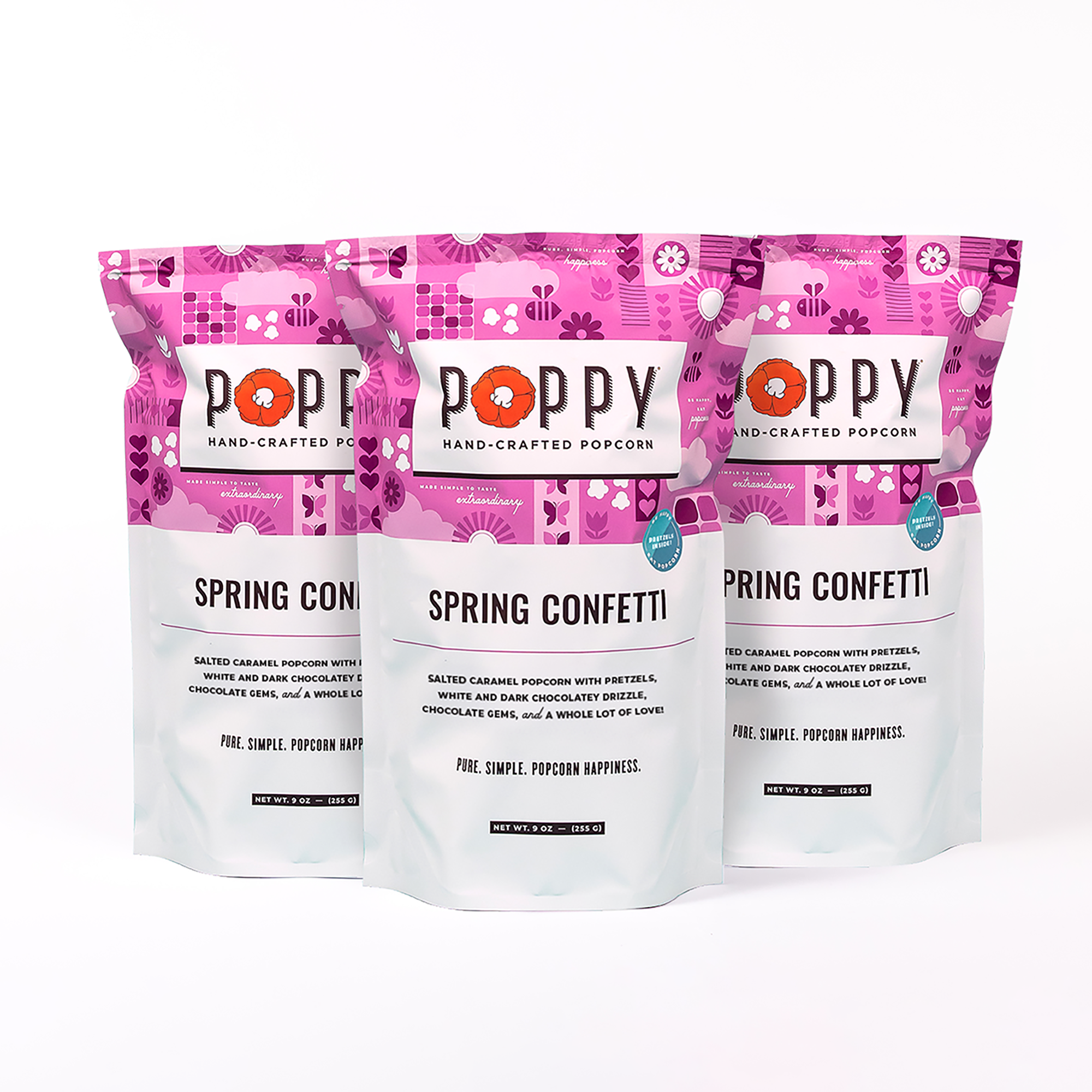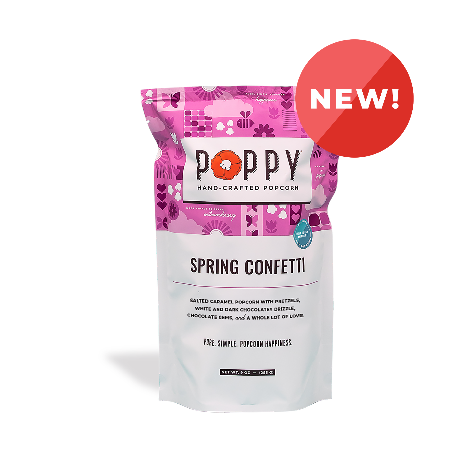 Our famous Salted Caramel popcorn and crunchy pretzels, all dressed up with chocolatey drizzle and pastel candy gems. Spring Confetti is the sweetest way to celebrate the season.